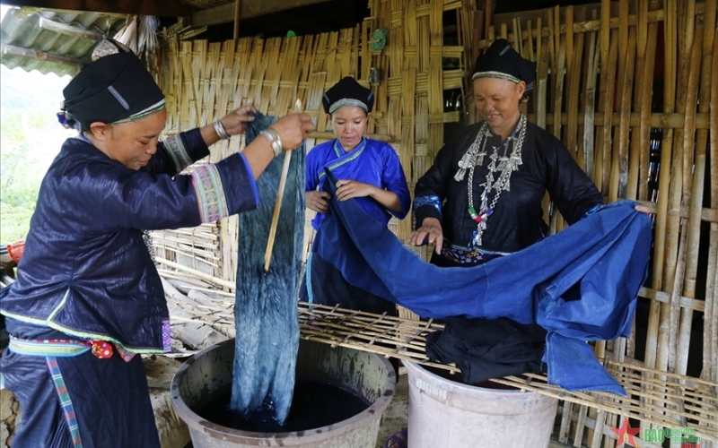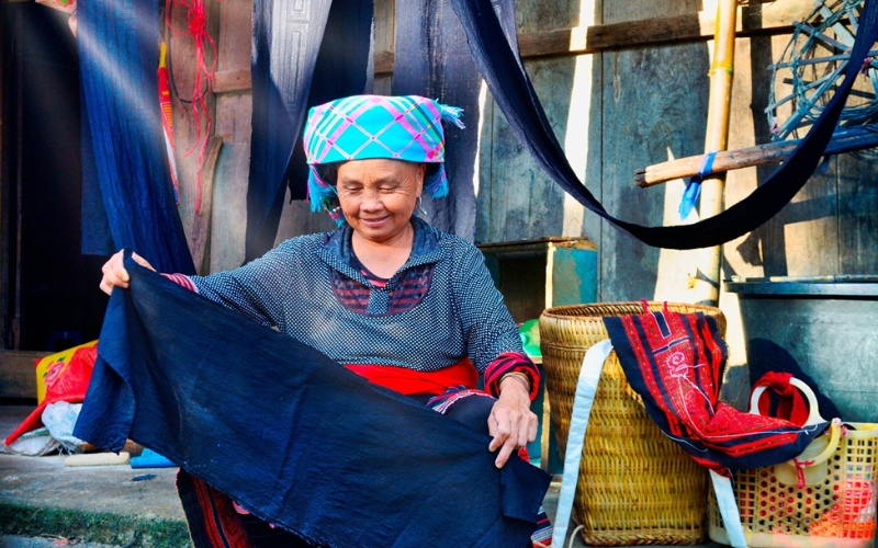 Những chiếc khăn, áo, hay sản phẩm nhuộm chàm với hoa văn khâu chỉ, thắt nút tỉ mỉ thể hiện bàn tay khéo léo và óc thẩm mỹ tinh tế, mang đậm bản sắc văn hóa dân tộc Tày.