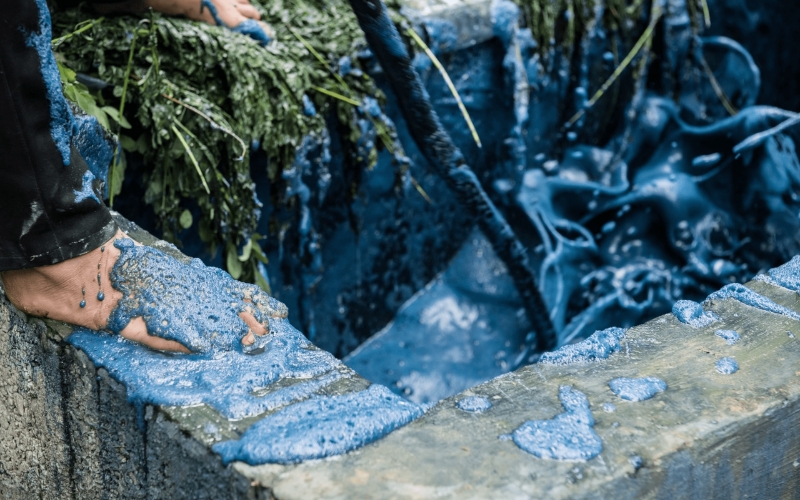 Ở vùng núi, nhiệt độ mát mẻ và không khí trong lành là điều kiện lý tưởng để thùng chàm lên men. Người phụ nữ Tày chăm sóc thùng chàm hàng ngày, tự nhuộm vải cotton, vải lanh cho trang phục lao động, tạo nên những tấm vải xanh chàm đậm đà, thoang thoảng hương núi rừng.