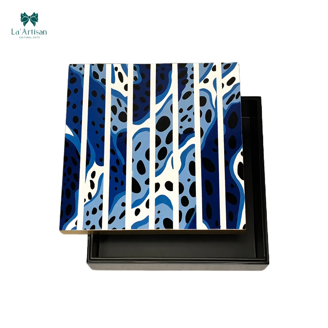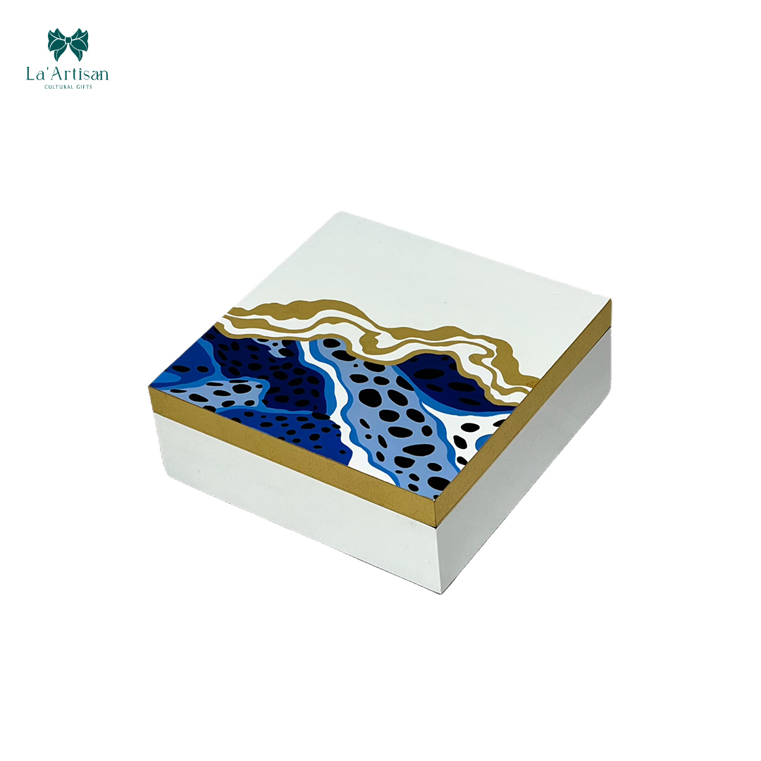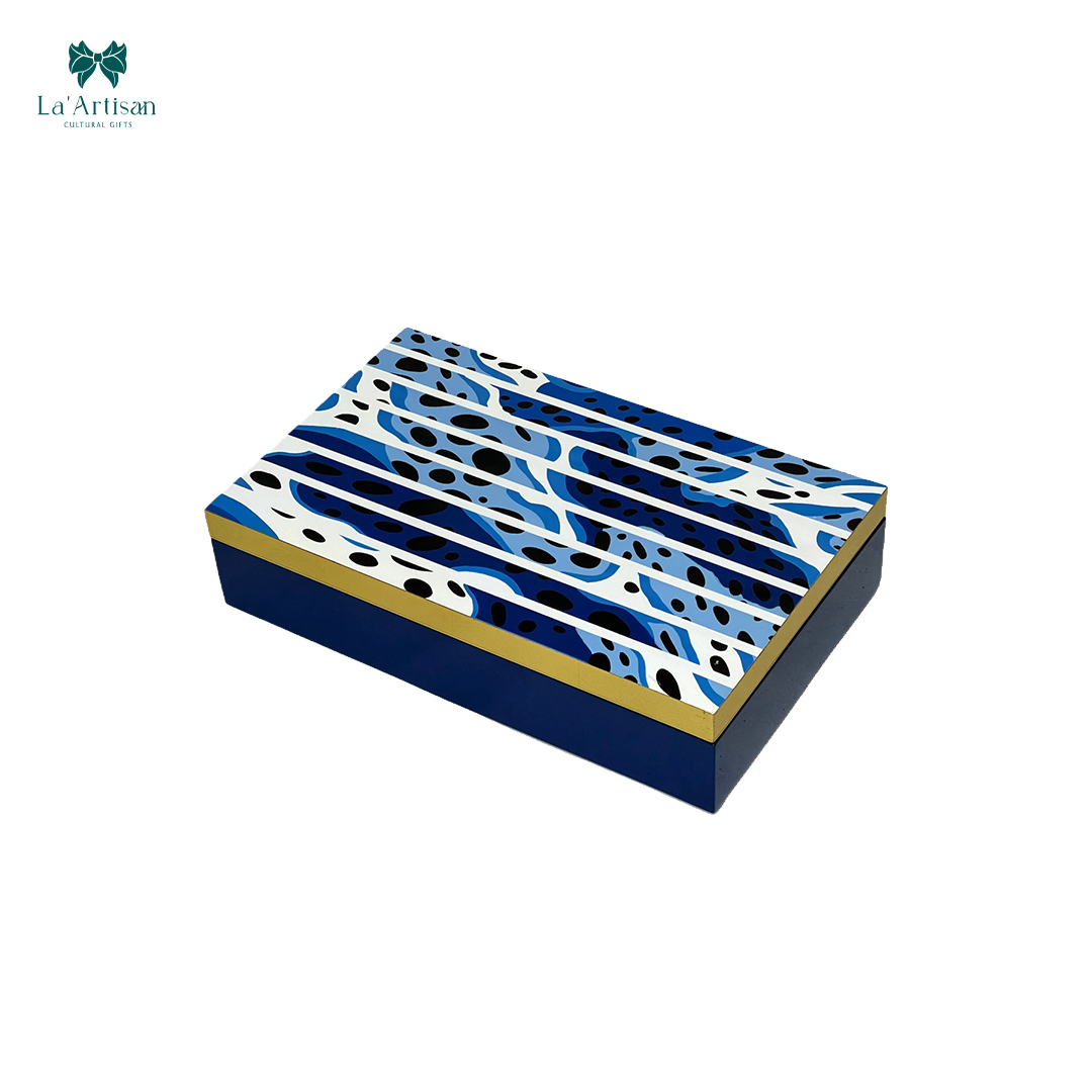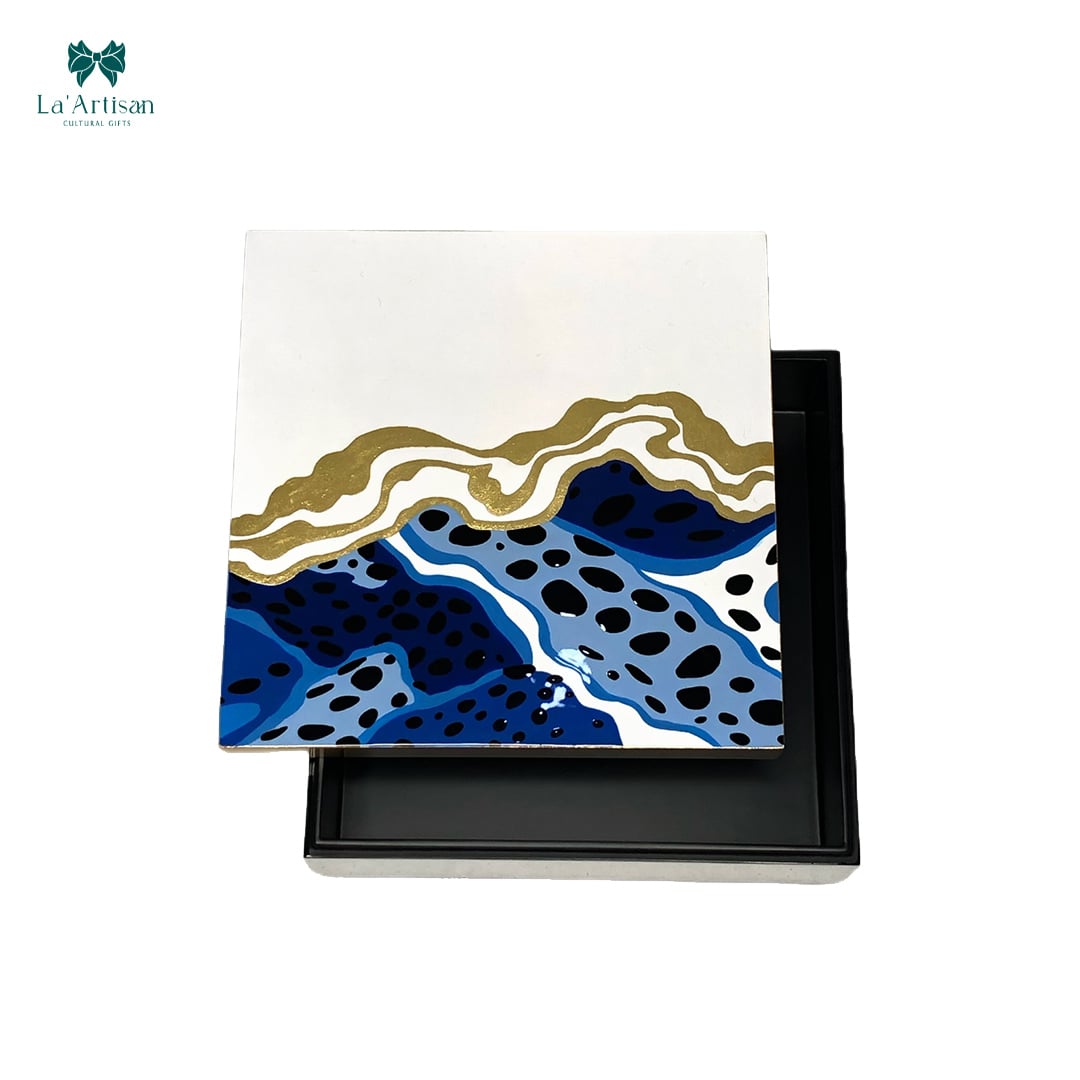 • Các vật phẩm như khay sơn mài, hộp khăn giấy, gối trang trí… đều được chế tác thủ công với kỹ thuật sơn mài truyền thống, nhưng trình bày theo phong cách đương đại tinh tế.