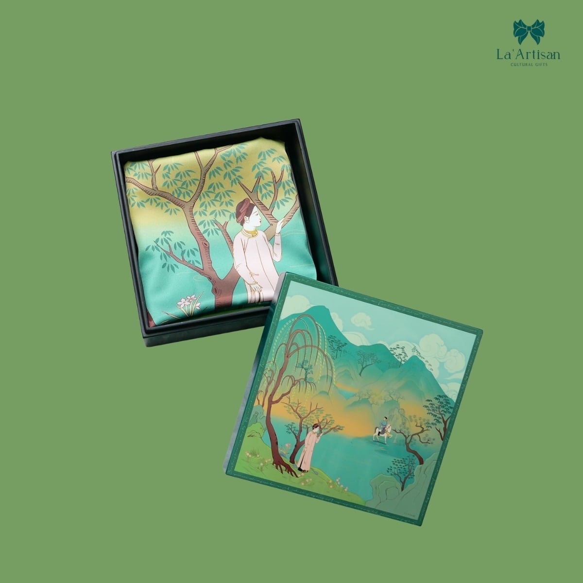 Hộp sơn mài trong văn hoá xưa là thứ để lau giọt nước mắt nhưng cũng là thư tình thêu kín, là lời tiễn biệt, là bản tuyên ngôn dịu dàng về lòng thủy chung và phẩm giá. Mượn ý tứ ấy để tái hiện lại câu chuyện của nữ sĩ Đoàn Thị Điểm, hộp sơn mài là một lời hẹn, một niềm thương, một sự tin tưởng dịu dàng rằng: dẫu không bên nhau, ta vẫn luôn trọn lòng hướng về nhau.