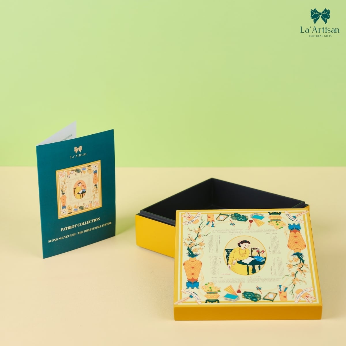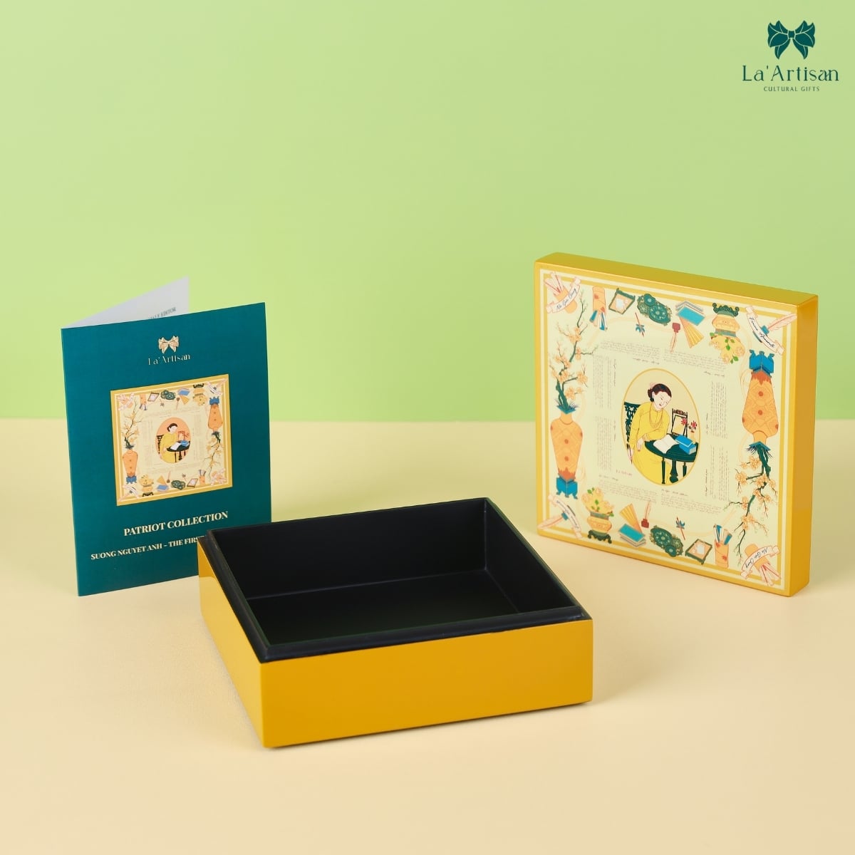 Lấy cảm hứng từ nữ sĩ Sương Nguyệt Anh - người phụ nữ tiên phong và cũng là nữ chủ bút đầu tiên của Việt Nam, mẫu hộp sơn mài cao cấp là bản tuyên ngôn mềm mại nhưng đầy sức mạnh về quyền tự do tư tưởng và khát vọng bình đẳng giới. Trong thời đại lễ giáo còn nặng nề, bà đã dám cất lên tiếng nói vì sự tiến bộ và vai trò xã hội của phụ nữ, khởi xướng một làn sóng khai sáng cho nữ giới Việt Nam.