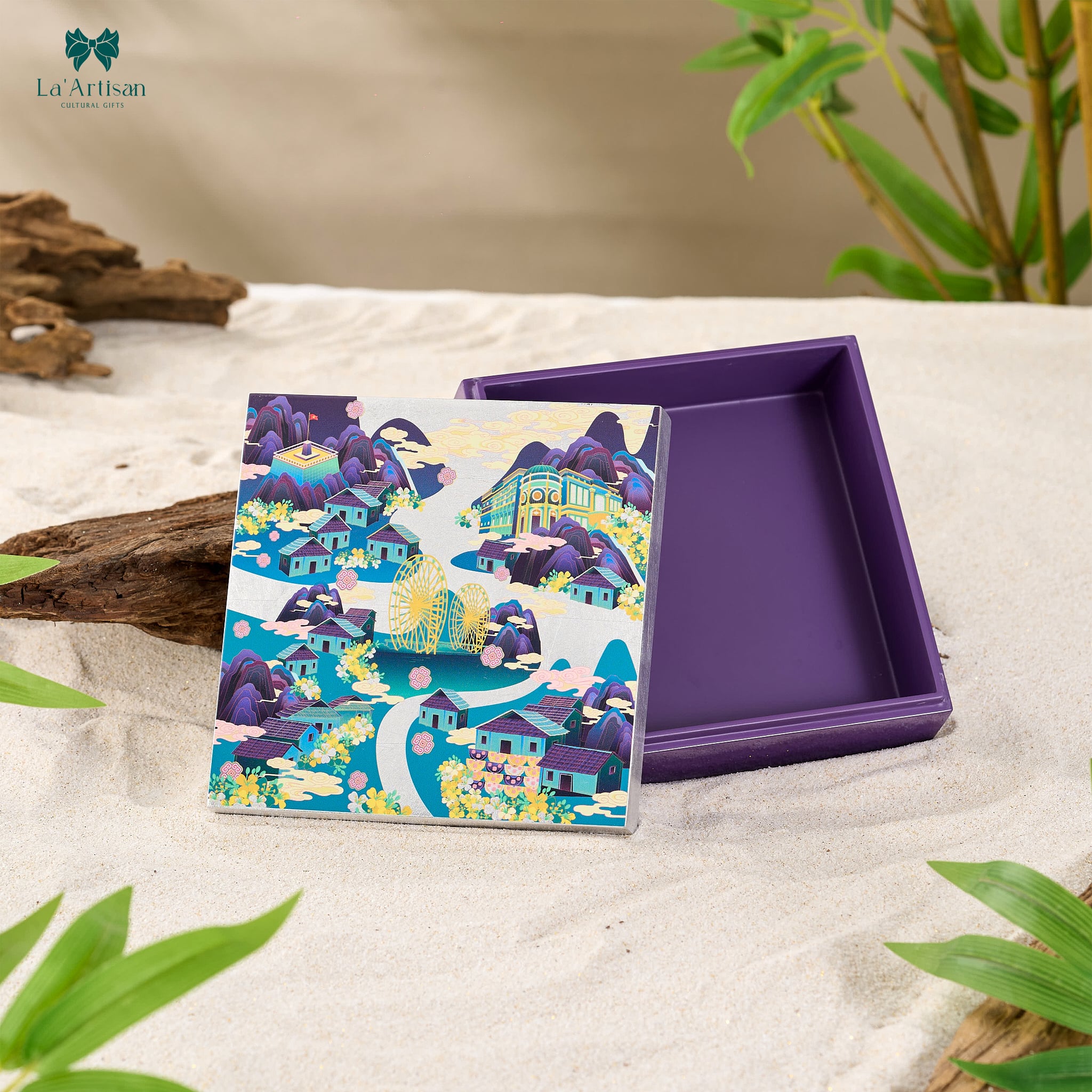 Từ cảm hứng ấy, hộp sơn mài Sa Pa được tạo nên như một lát cắt tinh giản của núi rừng Tây Bắc nơi thiên nhiên và con người cùng hiện diện trong một không gian thu nhỏ, giàu tính biểu tượng.