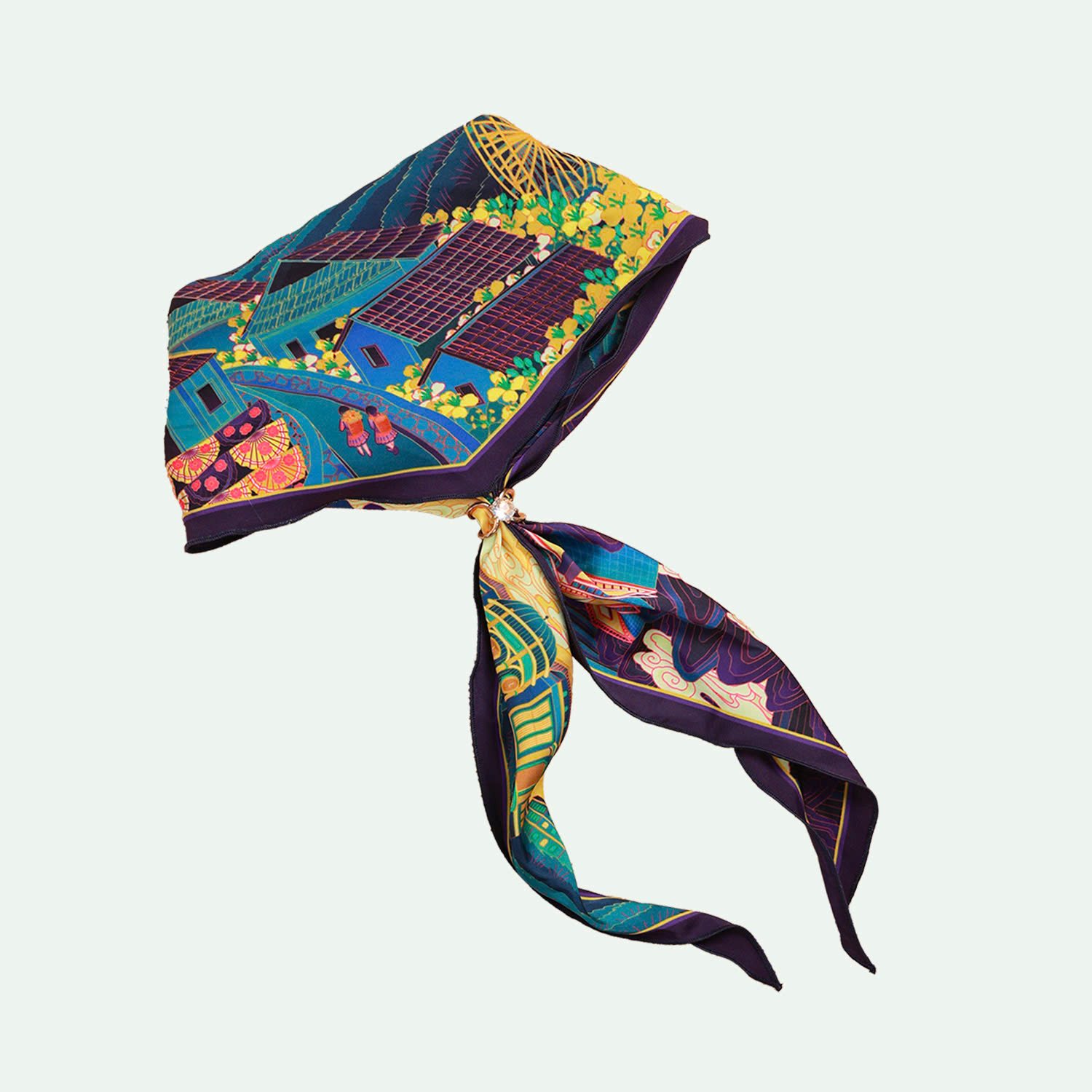 Lấy cảm hứng từ Sa Pa – vùng đất nơi thiên nhiên kỳ ảo hòa cùng bản sắc văn hóa và “chữ tình” của con người miền núi. Nơi đỉnh Phanxipăng chạm mây, hoa Đỗ Quyên nở rực giữa sương và cuộc sống lặng lẽ mà đầy yêu thương. Tất cả tạo nên chiếc khăn họa tiết Sapa, mang hơi thở núi rừng và tình người Tây Bắc.
