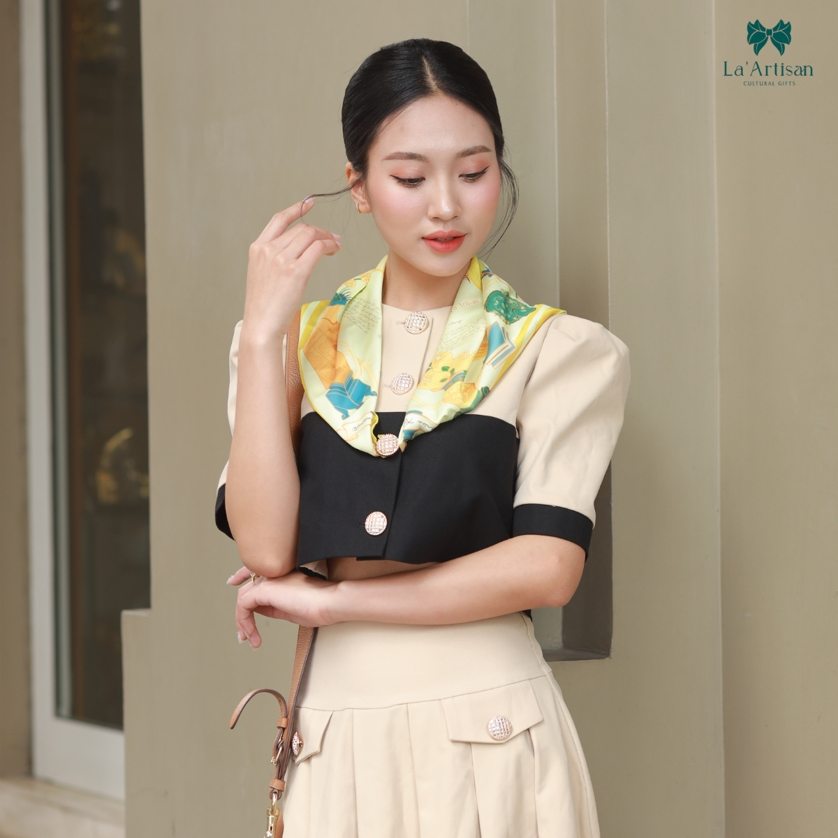 Đó là lời ngợi ca dành cho những tâm hồn tự do, luôn tìm thấy vẻ đẹp từ tri thức, từ ngôn từ và từ chính mình. Một khăn hoạ tiết sang trọng không chỉ điểm trang cho dáng vẻ, mà còn làm sáng bừng phong thái của người phụ nữ hiện đại: độc lập, sâu sắc và rạng rỡ như nắng đầu xuân.