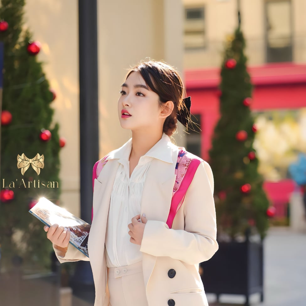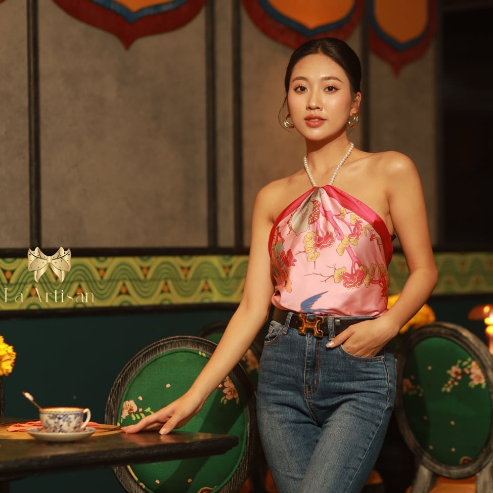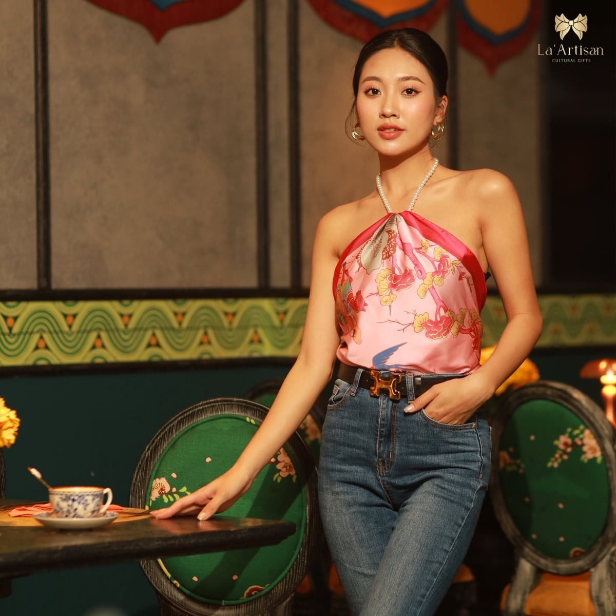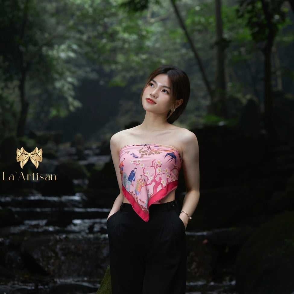 Hơn cả một phụ kiện, chiếc khăn hoạ tiết Hương sắc Truyện Kiều là lời gửi gắm về những mộng mơ đương thì và ước hẹn tình yêu mới chớm nở - nơi những cảm xúc đầu đời được cài lên từng nếp gấp mềm mại, như cánh hoa xuân e ấp bung nở giữa ánh nắng đầu mùa.