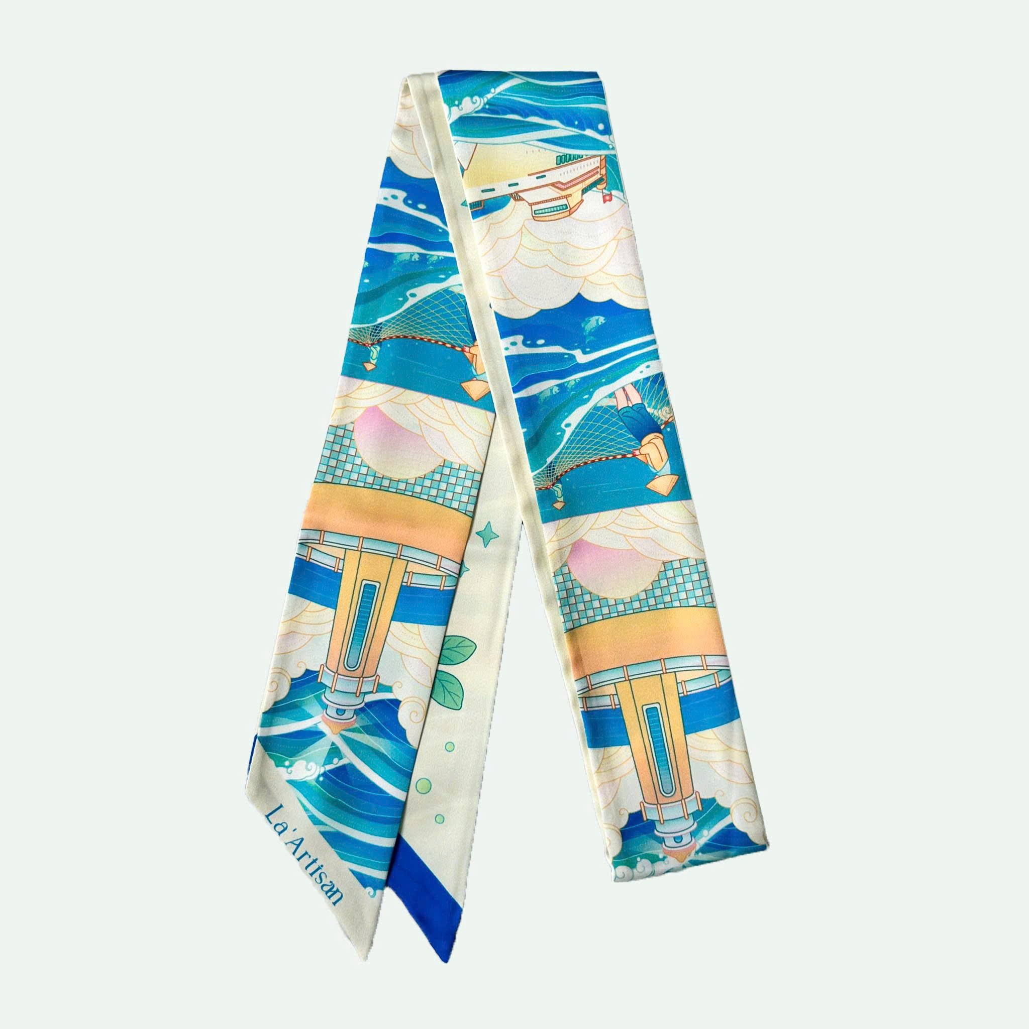 Lấy cảm hứng từ vẻ đẹp kiên cường của biển trời Tổ quốc và những người lính nơi đầu sóng ngọn gió, chiếc khăn họa tiết Biển đảo Việt Nam được các nhà thiết kế trẻ của La’Artisan sáng tạo nên như một lời tri ân sâu sắc. Từ ý tưởng ban đầu về niềm tự hào dân tộc, từng họa tiết, từng gam màu được thêu dệt nên bằng cả trái tim và sự tôn kính.