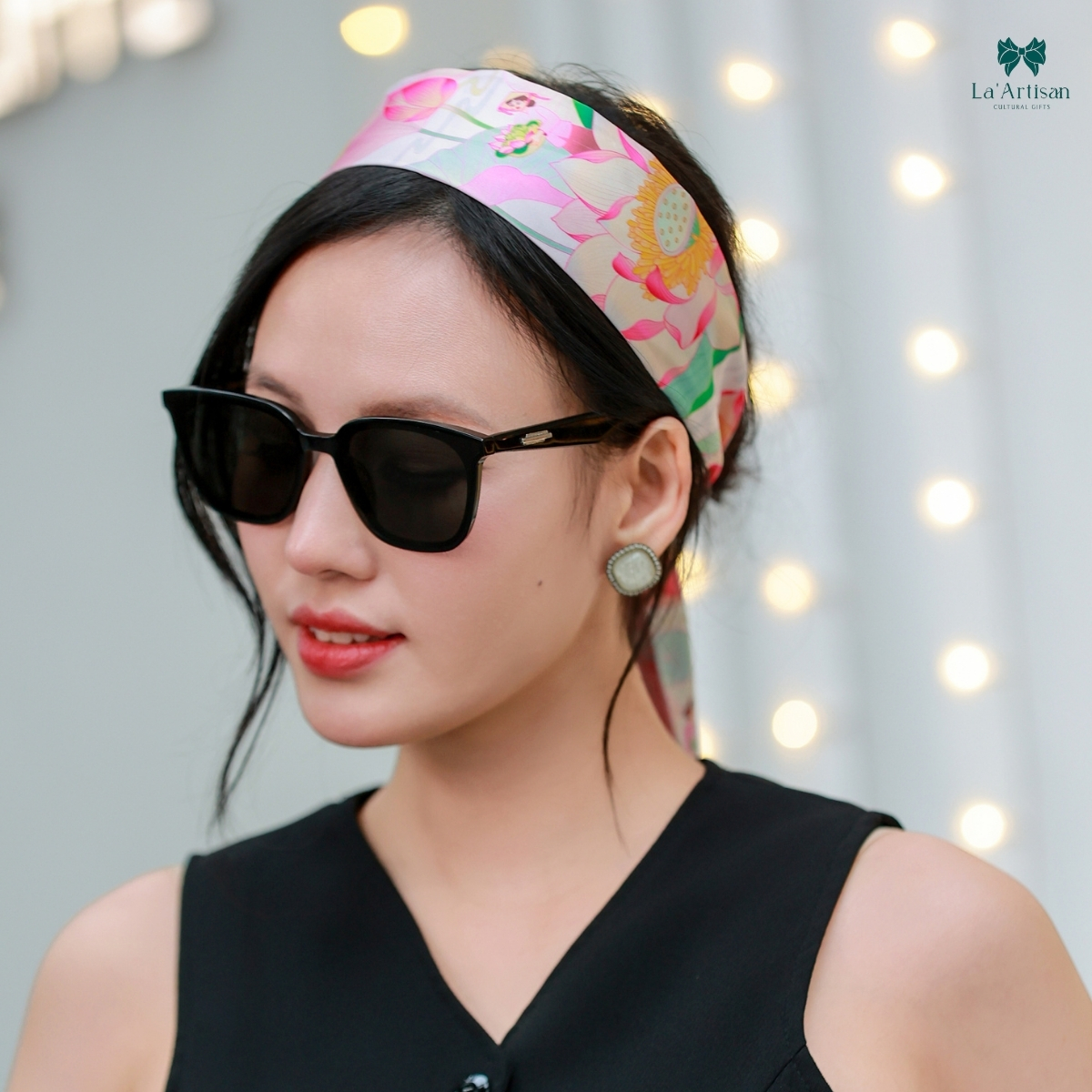 Với tông màu hồng dịu cùng các sắc độ chuyển dần hài hòa, chiếc khăn không chỉ là phụ kiện thời trang mà còn là câu chuyện về tình đất, tình người và vẻ đẹp nông thôn miền Tây. Khi khoác lên mình, bạn sẽ cảm nhận trọn vẹn nhịp sống, sự thanh bình và tình yêu mộc mạc mà sen Đồng Tháp mang lại.
