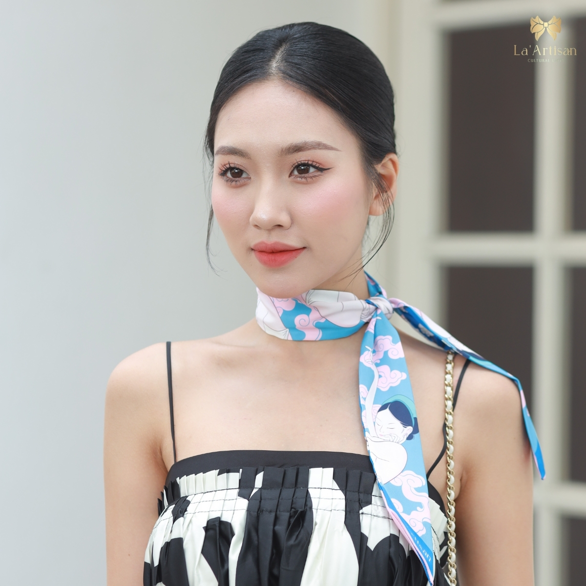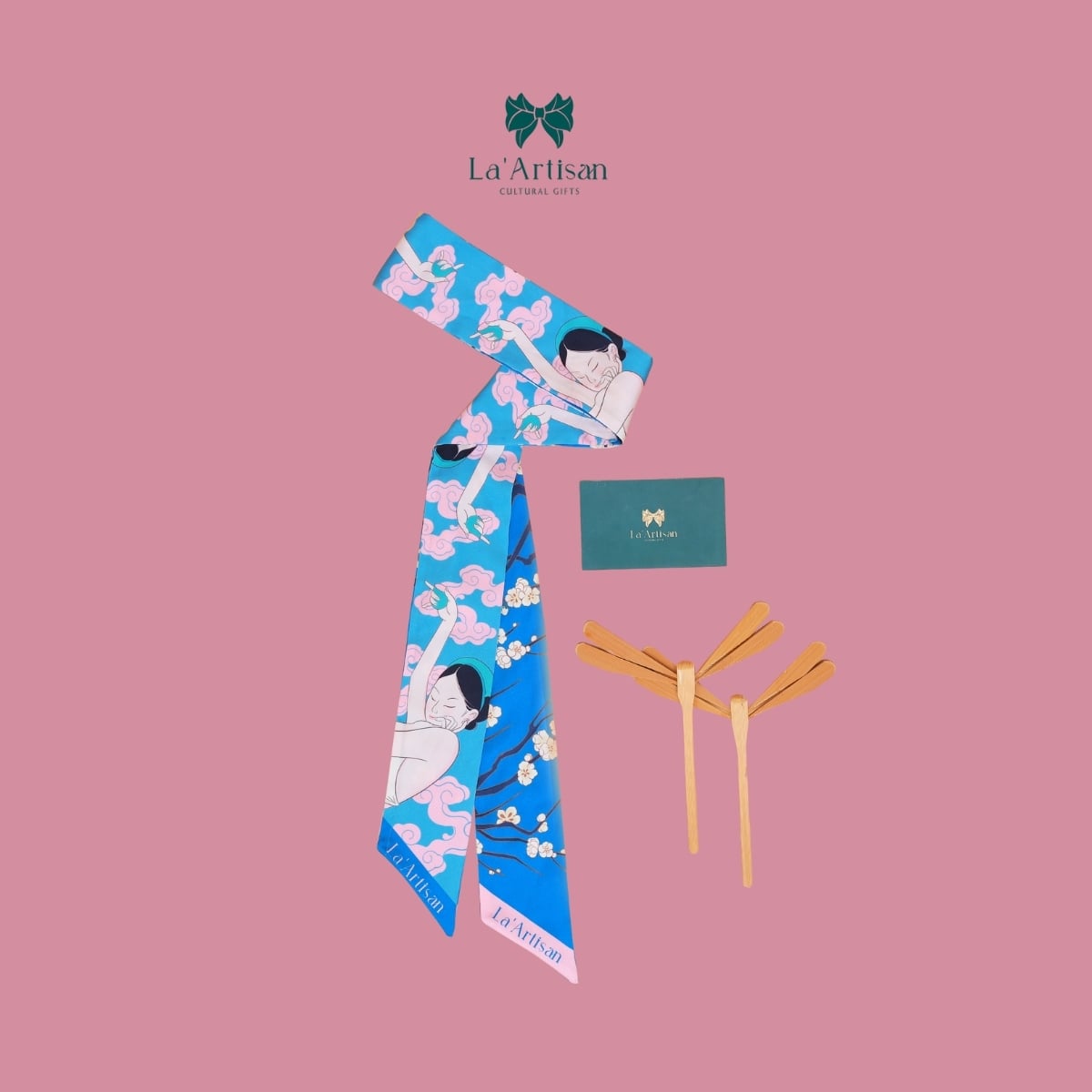 Lấy cảm hứng từ di sản ấy, La’Artisan thổi hồn vào khăn hoạ tiết Hồ Xuân Hương để tạo nên một bức tranh thị giác mềm mại nhưng đầy nội lực, nơi thi ca lặng lẽ ngân vang qua từng nét cọ, từng nếp gấp lụa tinh khôi.