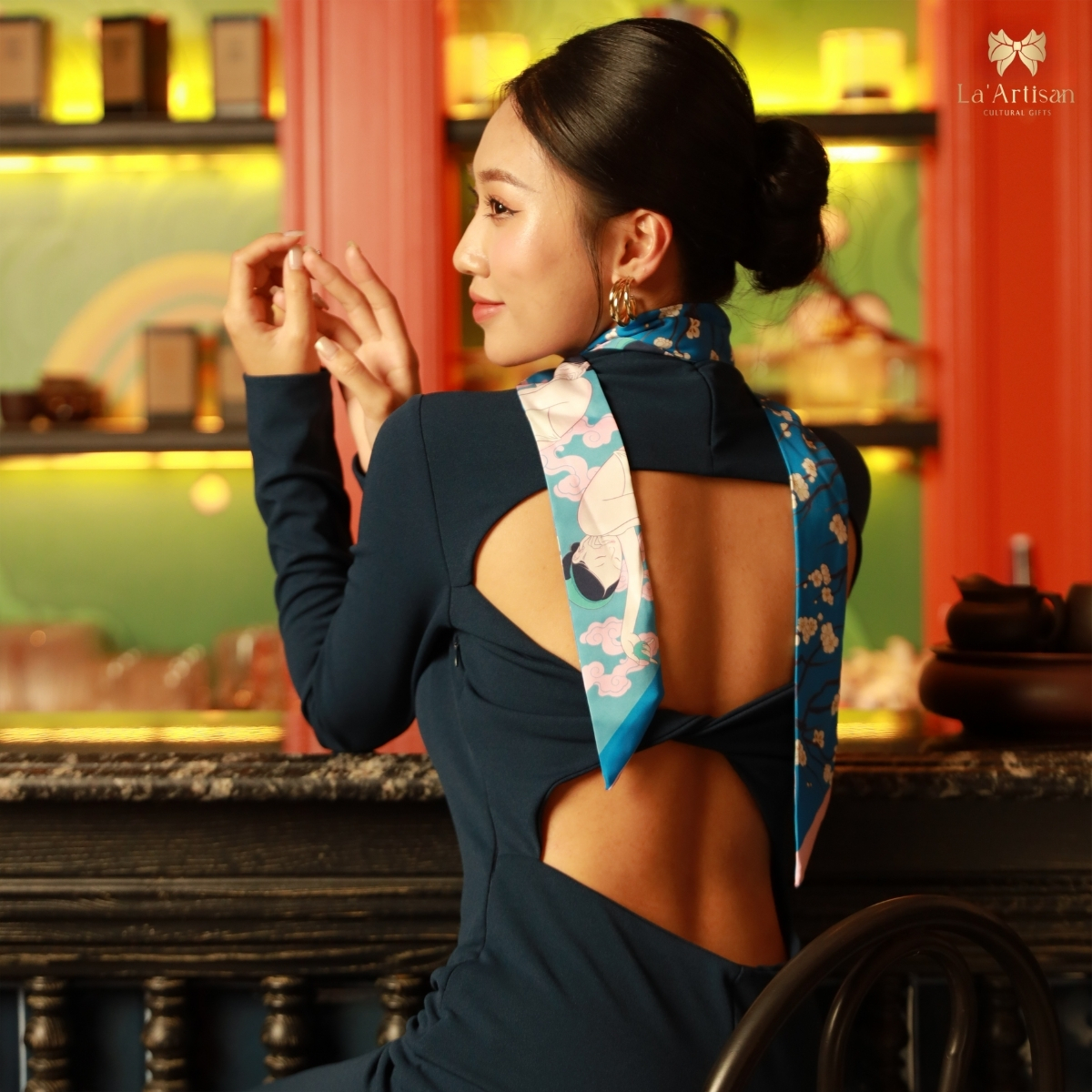 Chiếc khăn hoạ tiết cao cấp có thể quàng nhẹ qua vai, cài lên tóc, thắt thành dải ruy băng nơi cổ tay hay được trao như một lời gửi gắm dịu dàng. Nhưng hơn hết, nó là dấu ấn riêng của người phụ nữ hiện đại - người chọn cái đẹp không chỉ để nhìn ngắm, mà để biểu đạt chính mình: dám nghĩ khác, dám yêu sâu, dám sống thật và dám đẹp theo cách của riêng mình.