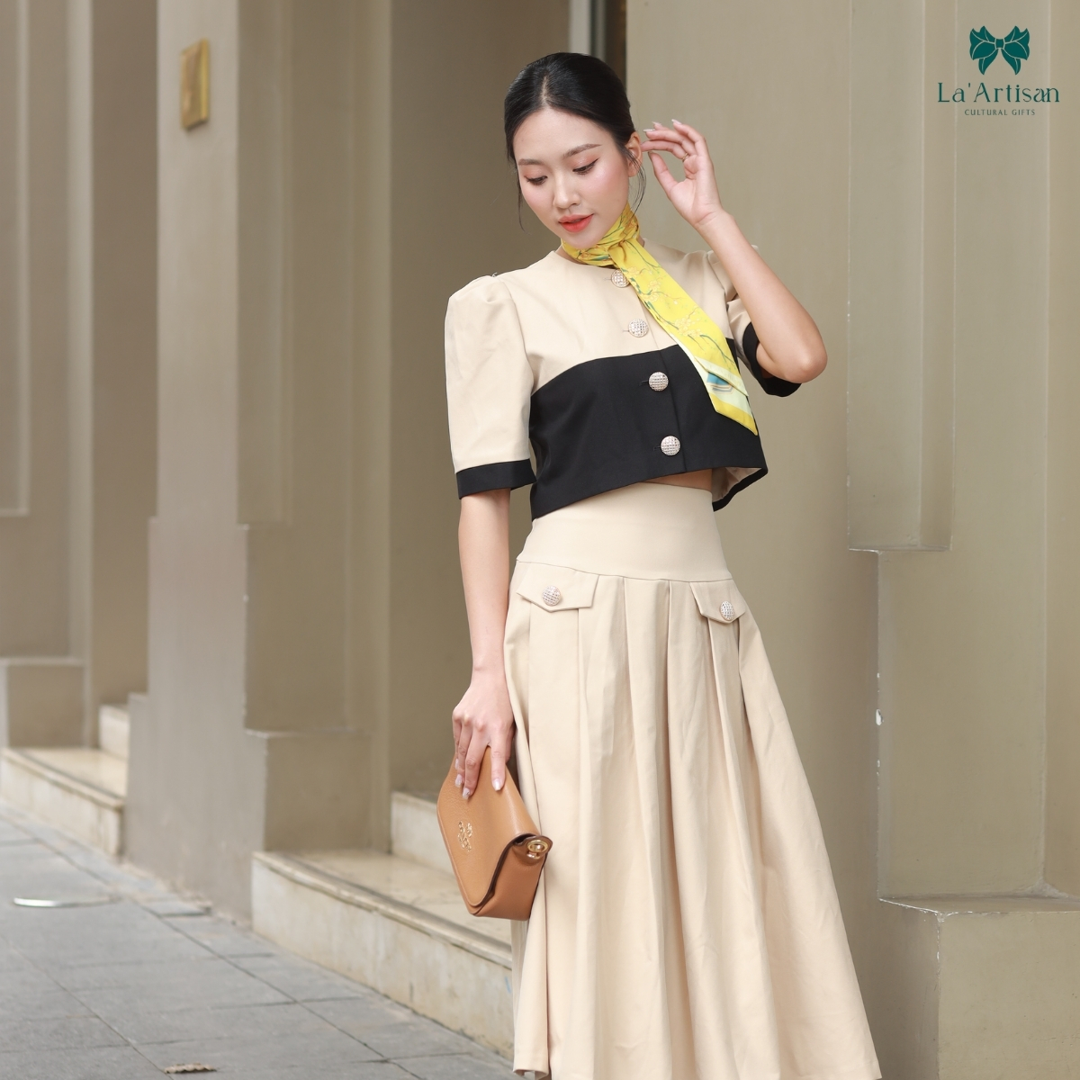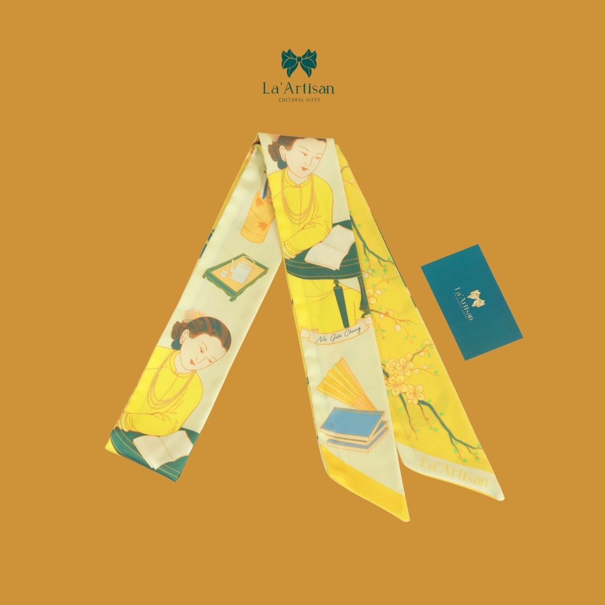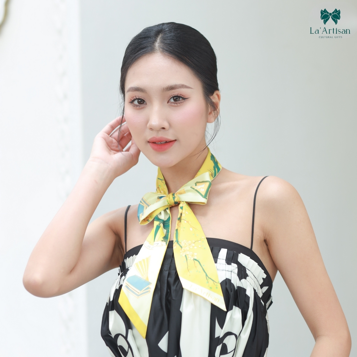 Đó là lời ngợi ca dành cho những tâm hồn tự do, luôn tìm thấy vẻ đẹp từ tri thức, từ ngôn từ và từ chính mình. Một khăn lụa hoạ tiết sang trọng không chỉ điểm trang cho dáng vẻ, mà còn làm sáng bừng phong thái của người phụ nữ hiện đại: độc lập, sâu sắc và rạng rỡ như nắng đầu xuân.