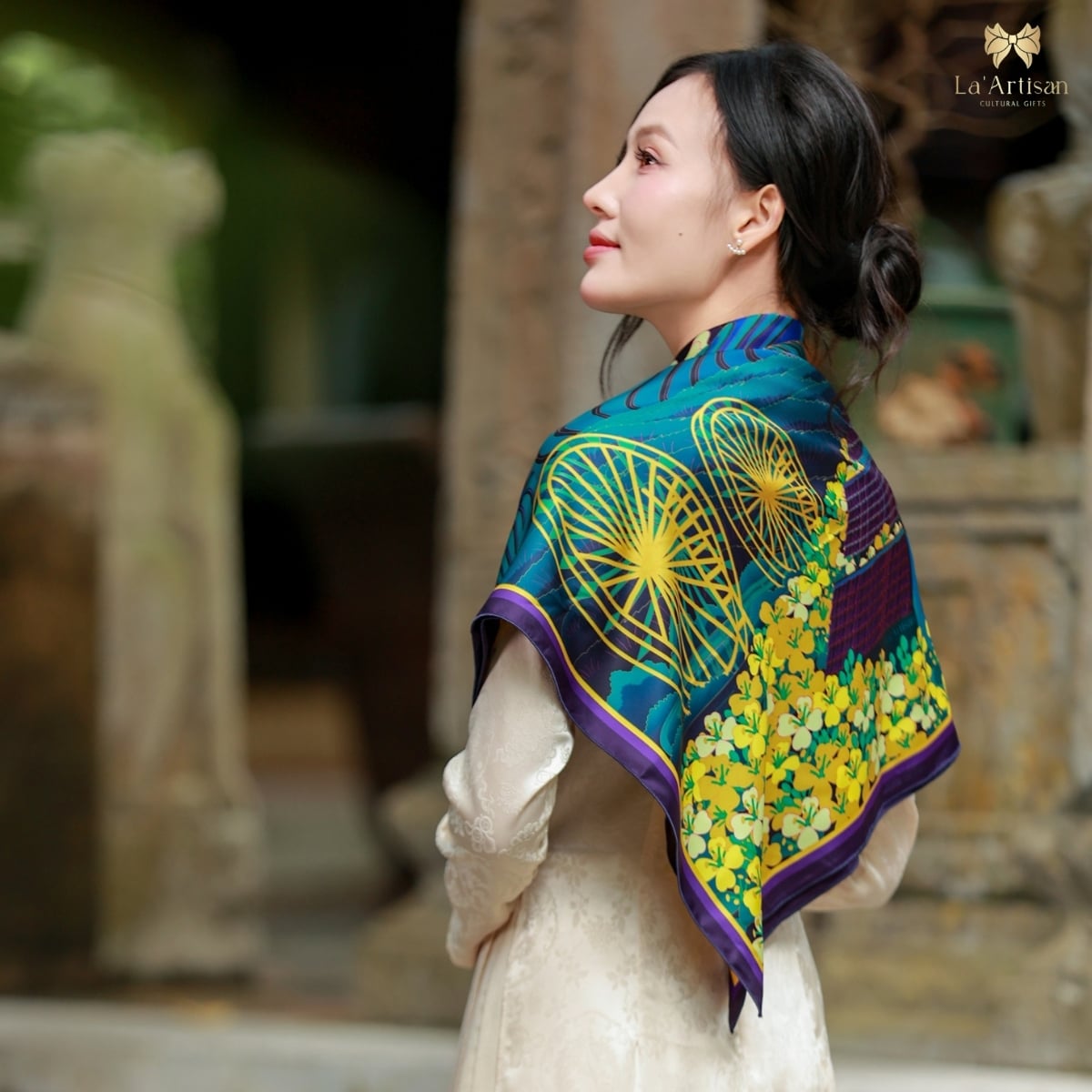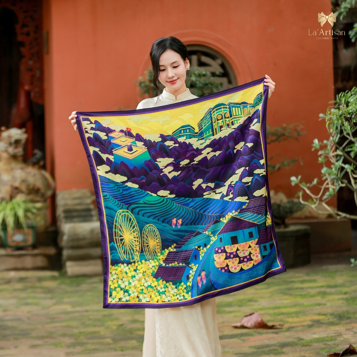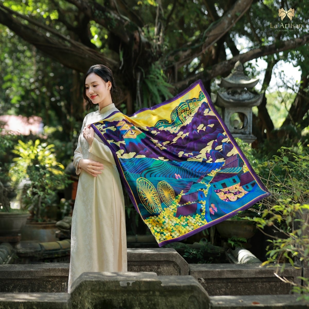 Chúng tôi muốn chiếc khăn không chỉ là sản phẩm hữu hình, mà là một hành trình được “cảm” bằng tất cả giác quan nơi những nhà thiết kế trẻ của La’Artisan gửi gắm tình yêu với đất, với người, và với cái đẹp chân thành của vùng đất ấy.