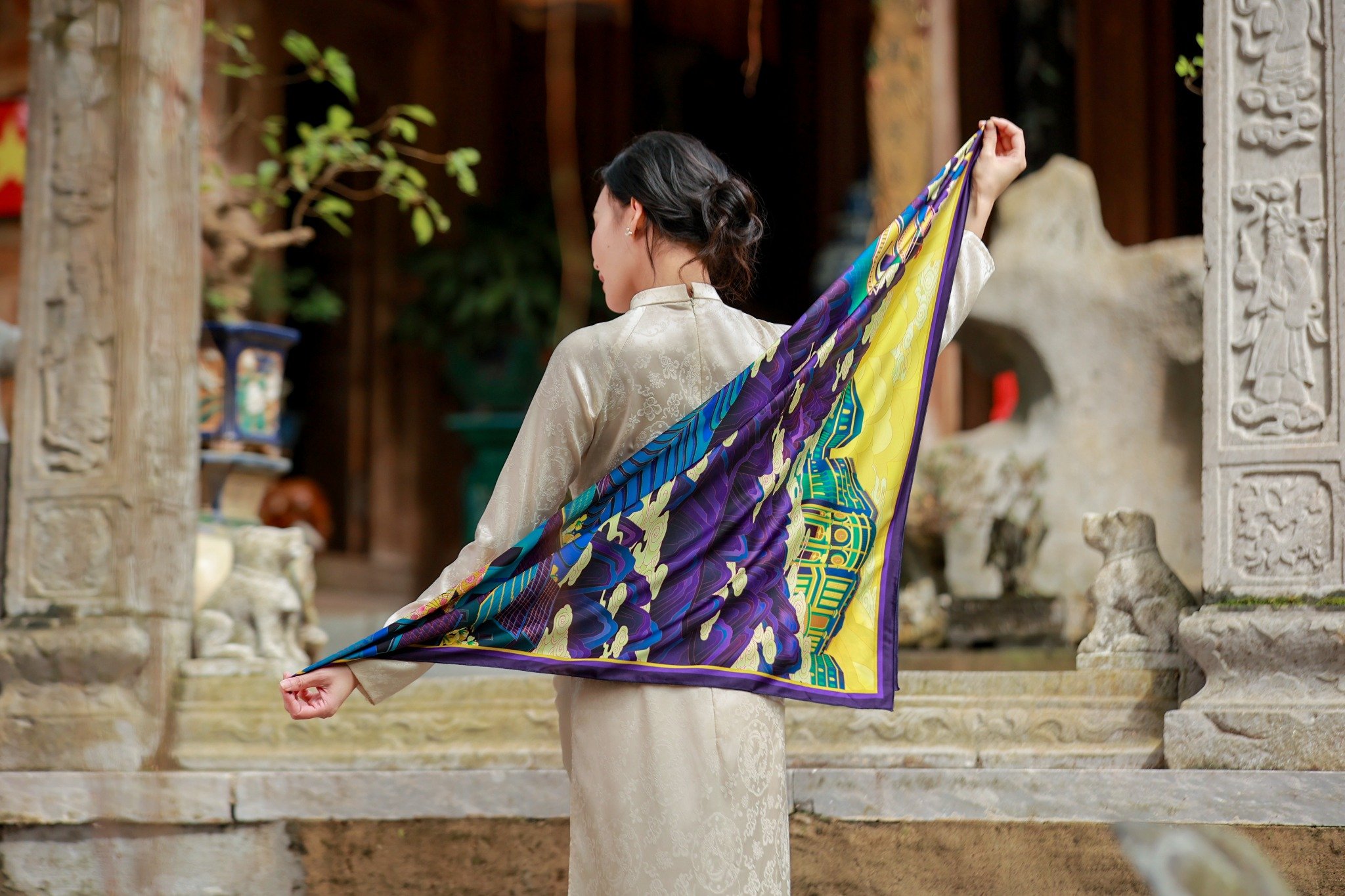 Lấy cảm hứng từ Sa Pa – vùng đất nơi thiên nhiên kỳ ảo hòa cùng bản sắc văn hóa và “chữ tình” của con người miền núi. Nơi đỉnh Phanxipăng chạm mây, hoa Đỗ Quyên nở rực giữa sương và cuộc sống lặng lẽ mà đầy yêu thương. Tất cả tạo nên chiếc khăn họa tiết Sapa, mang hơi thở núi rừng và tình người Tây Bắc.