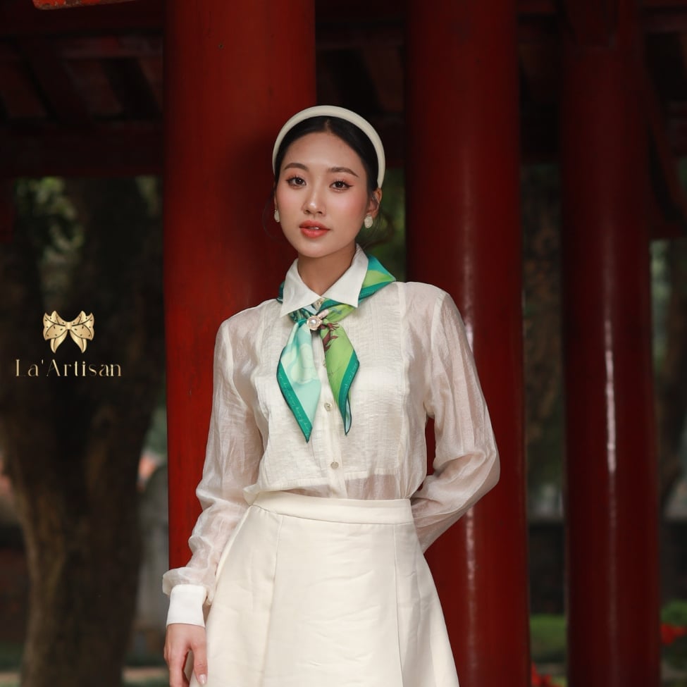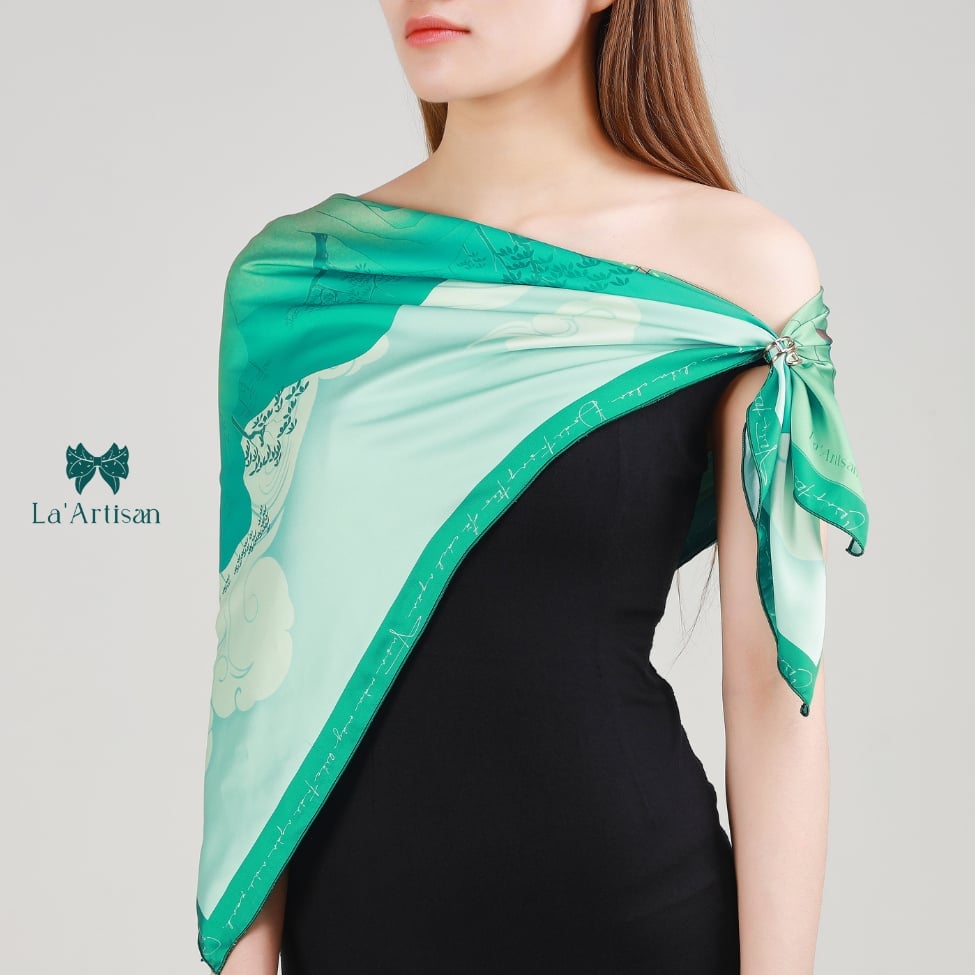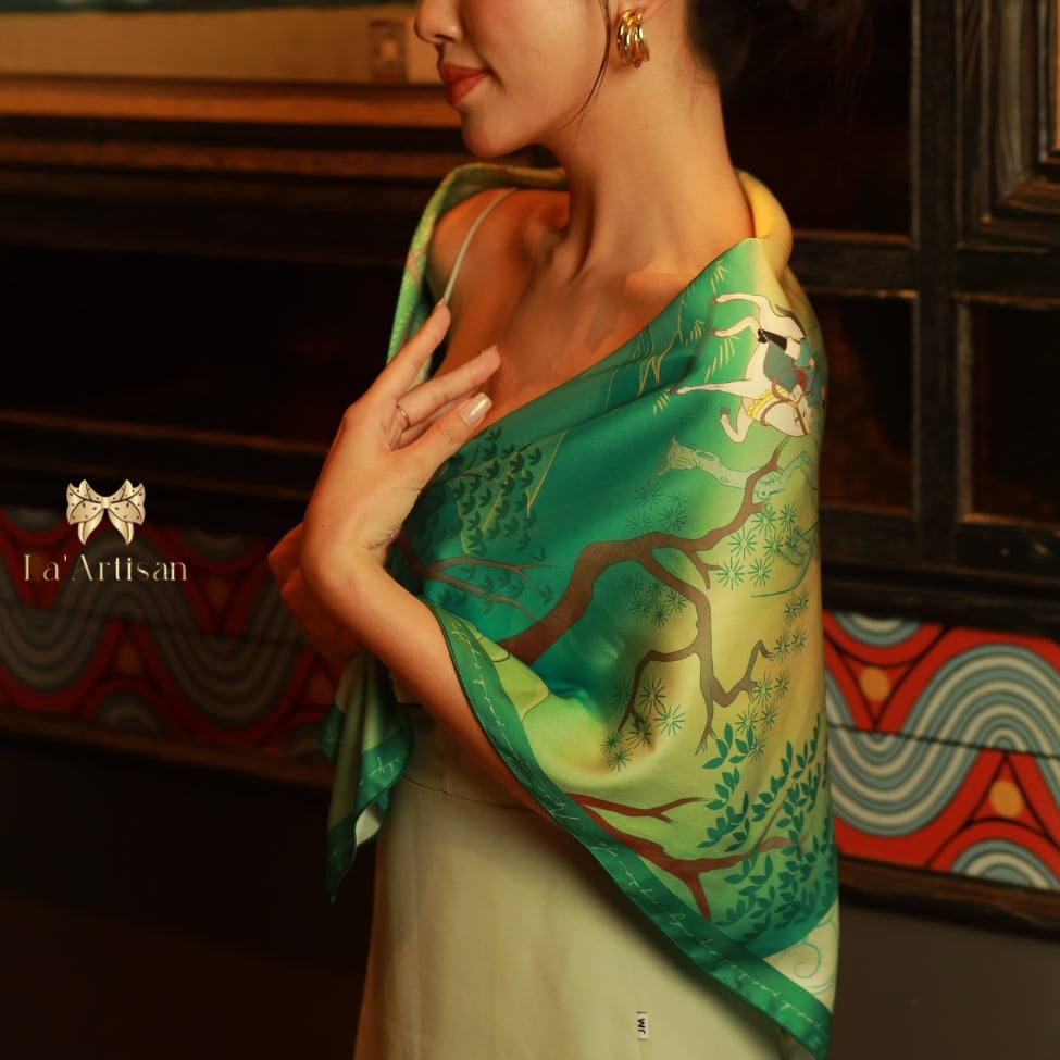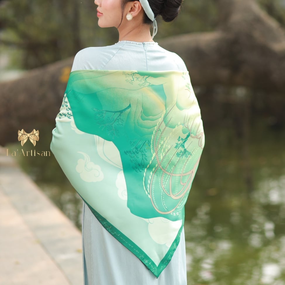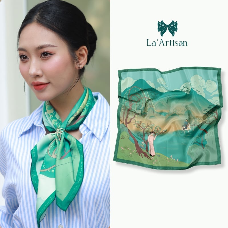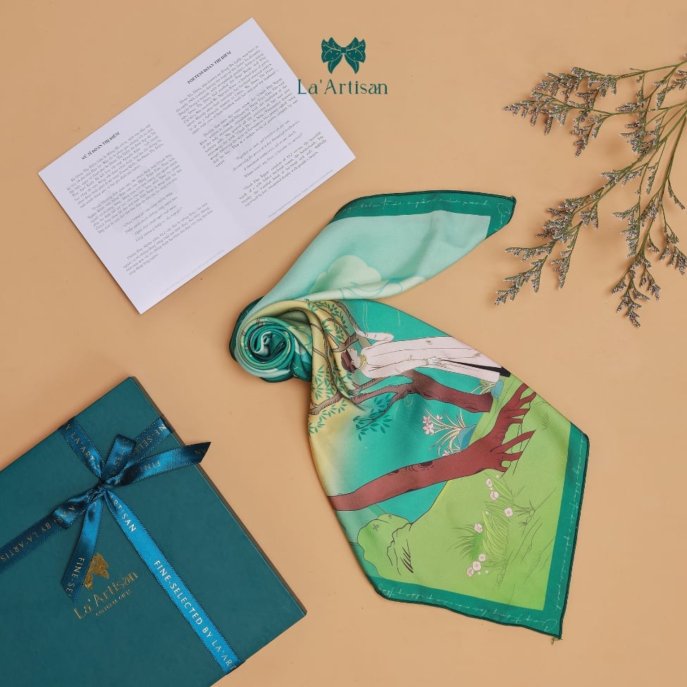 Người ta thường nhớ đến Đoàn Thị Điểm như một bóng hồng tài sắc, nhưng lịch sử thực ra ghi nhớ bà nhờ một điều sâu lắng hơn: người phụ nữ đã thay tiếng lòng chinh phụ bằng lời thơ bất tử. Chinh Phụ ngâm khúc, bản dịch chữ Nôm được cho là của Đoàn Thị Điểm, không chỉ là một kiệt tác nghệ thuật mà còn là sự khắc khoải đợi chờ của những người vợ thời chiến chinh. Từ tinh thần ấy, La’Artisan đã thiết kế nên chiếc khăn lụa hoạ tiết mang tên Đoàn Thị Điểm như một bản giao hòa giữa văn chương và nghệ thuật thị giác.
