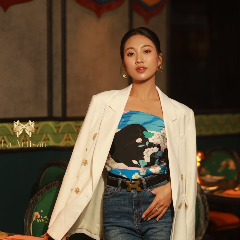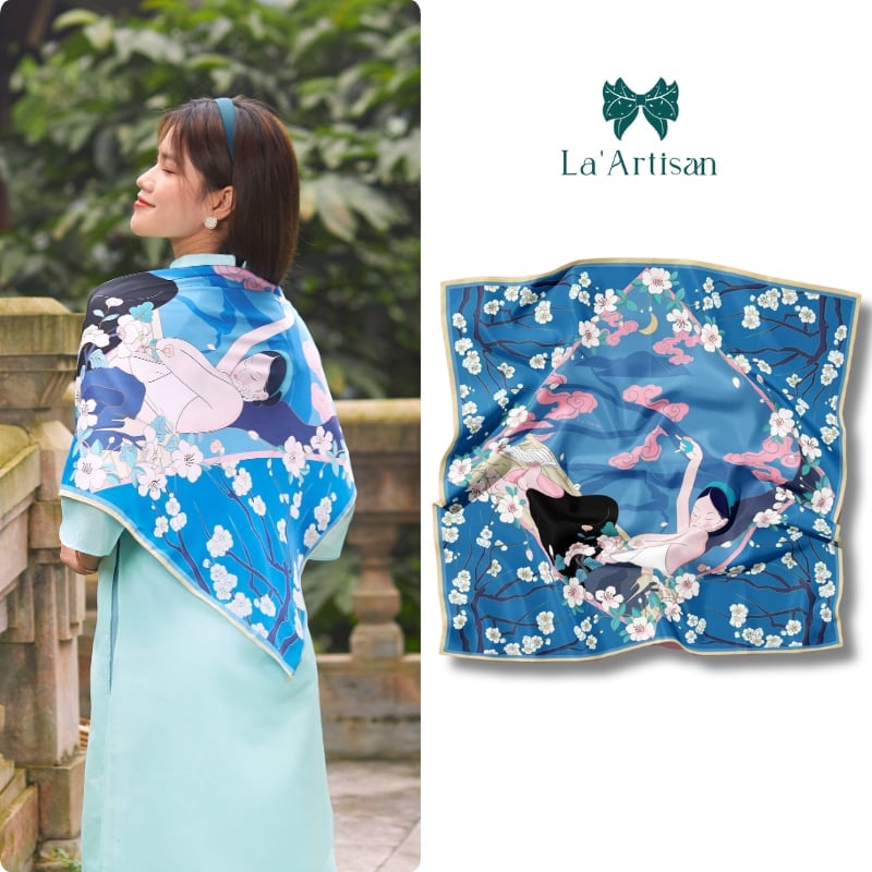 Chiếc khăn lụa cao cấp có thể quàng nhẹ qua vai, cài lên tóc, thắt thành dải ruy băng nơi cổ tay hay được trao như một lời gửi gắm dịu dàng. Nhưng hơn hết, nó là dấu ấn riêng của người phụ nữ hiện đại - người chọn cái đẹp không chỉ để nhìn ngắm, mà để biểu đạt chính mình: dám nghĩ khác, dám yêu sâu, dám sống thật và dám đẹp theo cách của riêng mình.