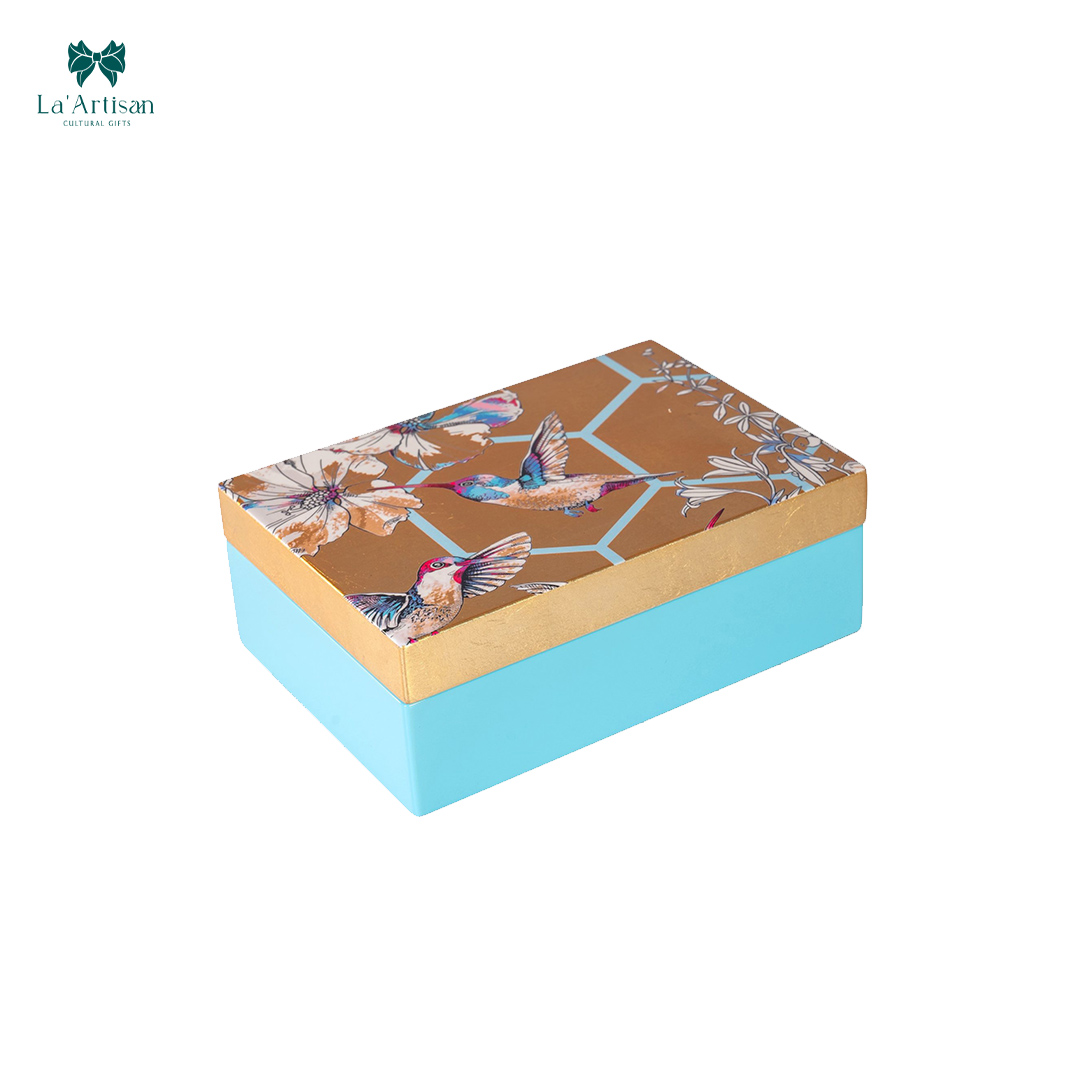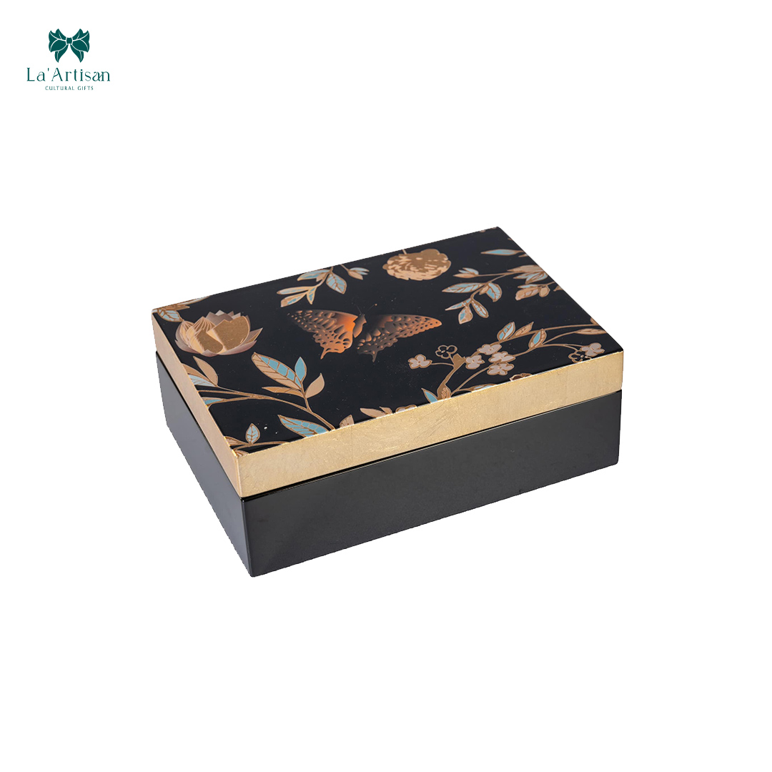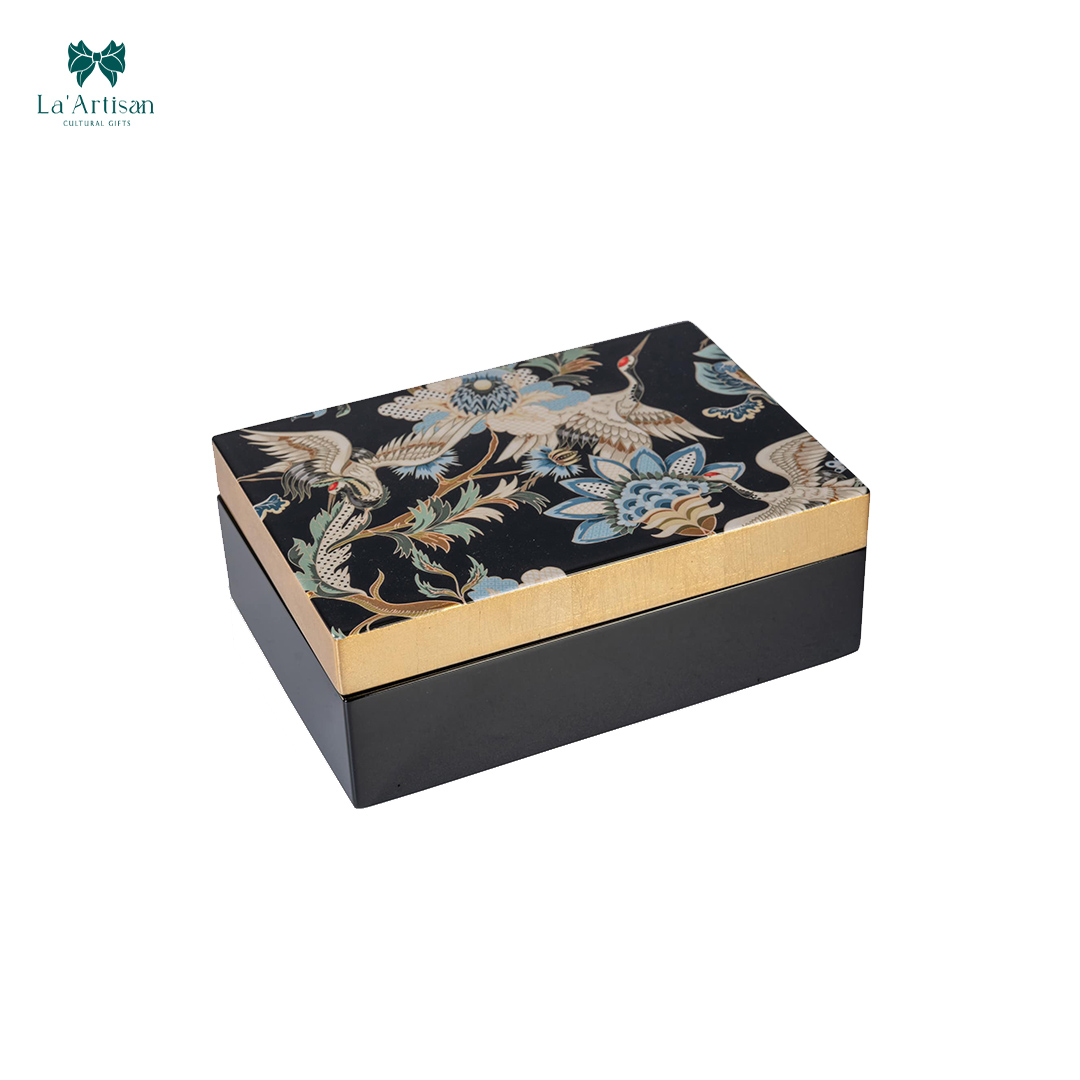 Hộp đựng sơn mài: Mùa Xuân, Chim Hạc, Hoa Lá, Chim Ruồi